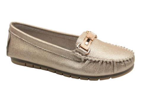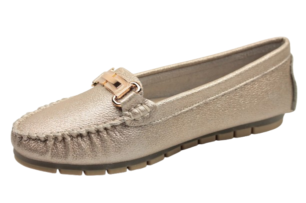 Półbuty Mokasyny Damskie LR51-546 Złote Miękkie SKÓRZANE Dobra Cena