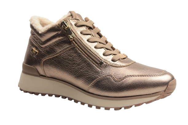 Caprice Damskie Botki 9-26201-43 Taupe Metalic Futerko Ciepłe Suwaki