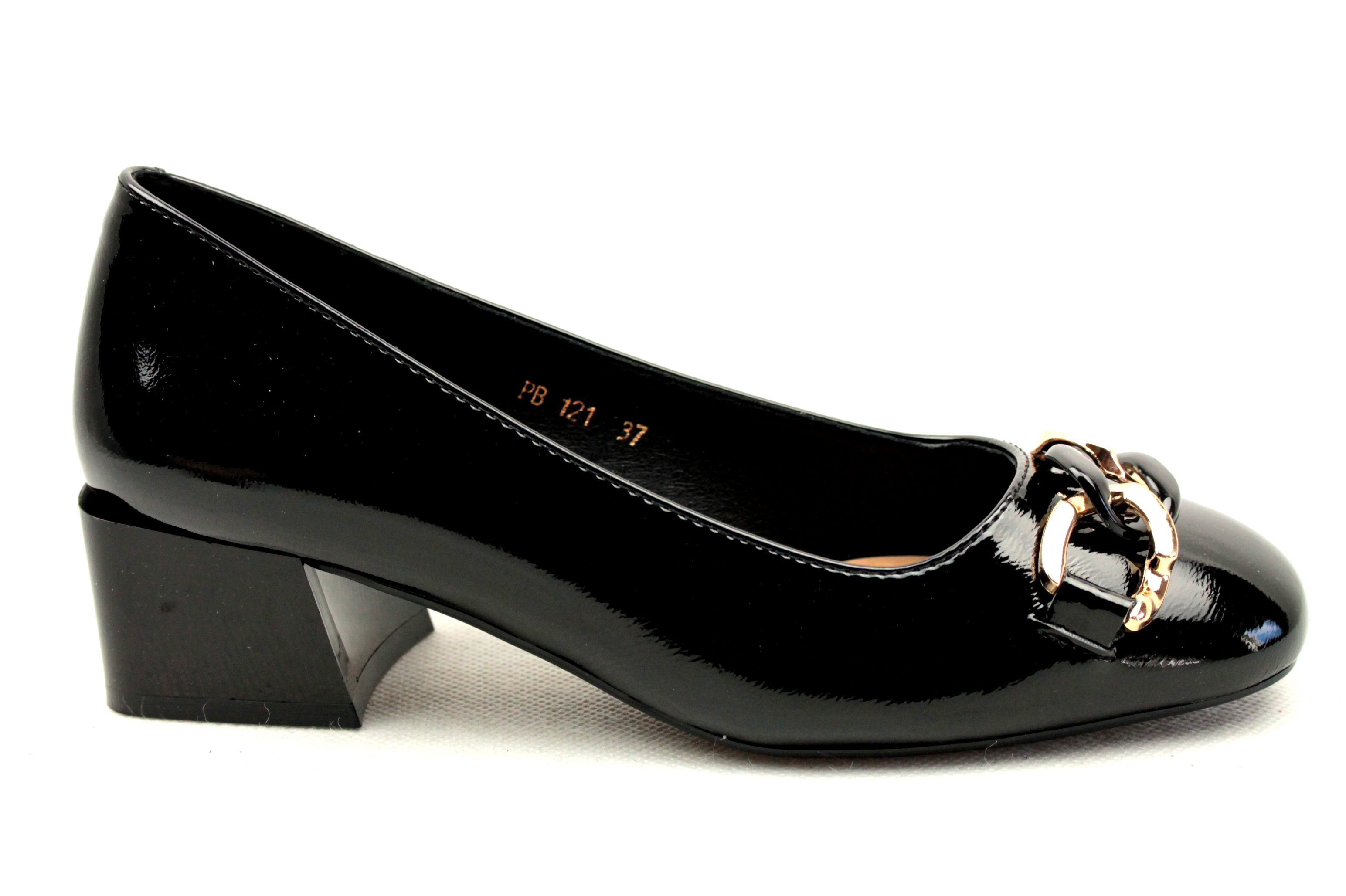 Czółenka Sergio Leone PB121 Czarne Lakierowane Łańcuch