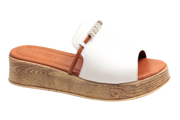 Klapki Venezia B082LEWHOBK043 Białe na platformie z ozdobami