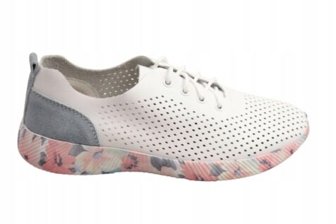 Połączenie klasycznej bieli z delikatnymi, pastelowymi akcentami oraz kolorową podeszwą sprawia, że obuwie prezentuje się świeżo i stylowo, doskonale uzupełniając codzienne stylizacje – od miejskich po bardziej casualowe.
