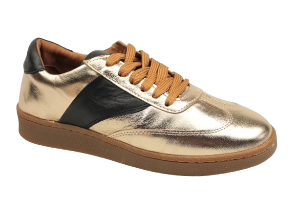 Obuwie zostało wykonane z wysokiej jakości skóry naturalnej. Połączenie sportowego designu z metaliczną, złotą cholewką dodaje odważnego charakteru stylizacji. Czarne wstawki uzupełniają nietuzinkowy wygląd obuwia. Model dopasowany do codziennej aktywności fizycznej oraz miejskich stylizacji.