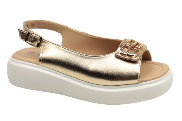 Sandały Damskie 25-07324GD Złote Na PLATFORMIE Skórzane DOBRA Cena