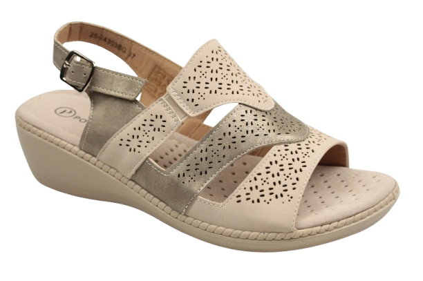 Sandały Damskie 25-24303BG Beżowy Na Kliniku Skórzana Wkładka WYGODNE