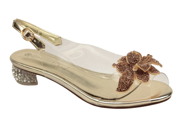 Sandały Damskie 25-43311GD Złoty ŻELKI Ozdobny kwiatek CYRKONIE