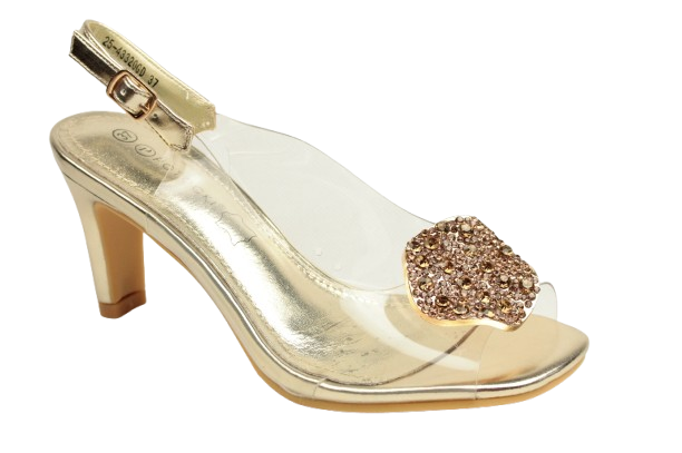 Sandały Damskie 25-43320GD Złoty ŻELKI Ozdoba CYRKONIE