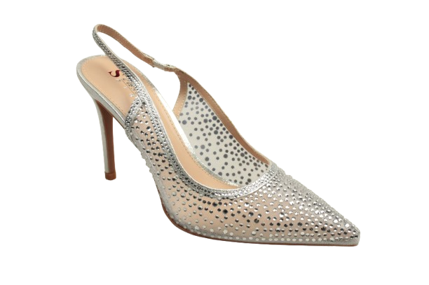 Szpilki z CYRKONIAMI z odkrytą piętą SEASTAR TU292 silver SYLWESTROWE