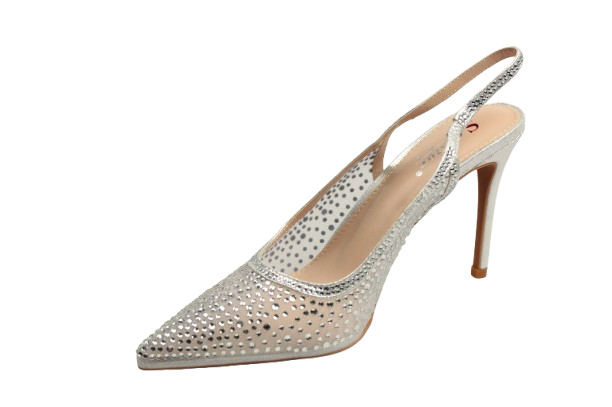 Szpilki z CYRKONIAMI z odkrytą piętą SEASTAR TU292 silver SYLWESTROWE