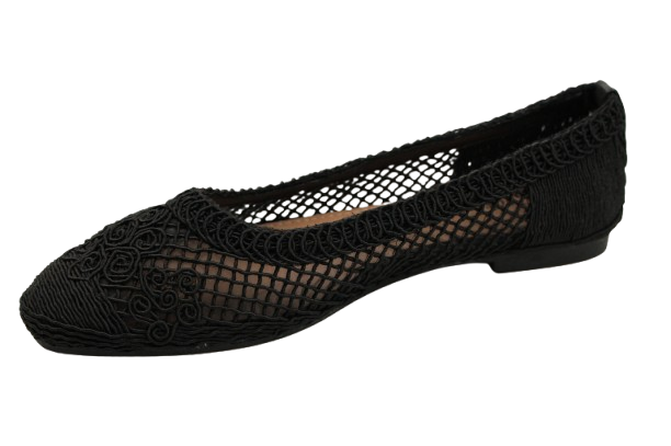 Baleriny T640P Czarne Ażurowe Koronkowe Wyjściowe Miękkie