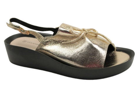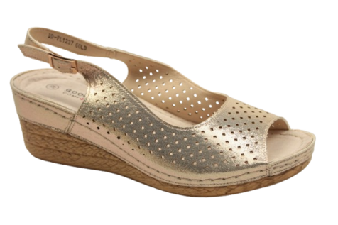 Sandały GD-FL1237 Złote Ażurowe na koturnie Skórzana wkładka