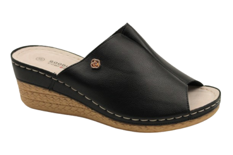 Klapki GD-FL1261 Czarne Stylowe, Skórzana Wkładka na KOTURNIE